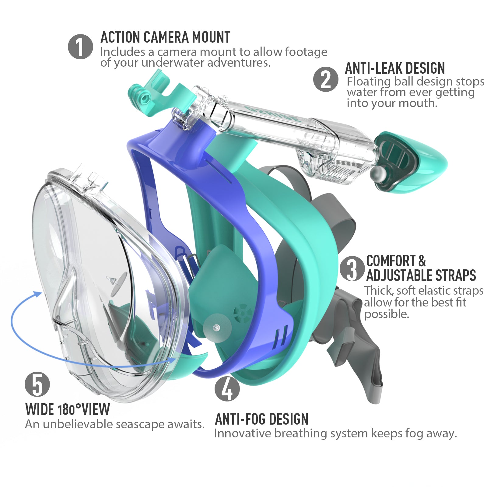 This combination makes it one of the best full face snorkel masks for clear vision and comfortable breathing.