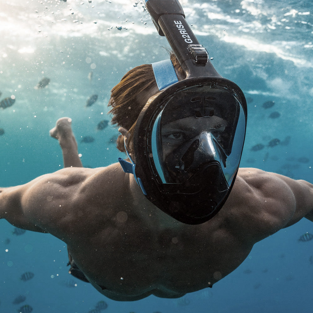 G2RISE masks provide a 180° panoramic view, offering a clear and wide field of vision. This ensures you can fully enjoy the underwater scenery with fewer blind spots, enhancing your snorkeling experience.