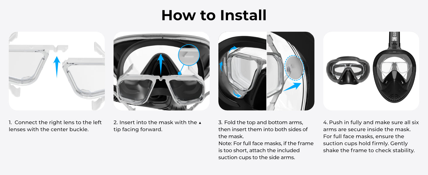 Fits Our Masks Only: These lenses are designed for G2RISE full- and half-face snorkel masks. Compatibility with other brands is not guaranteed.