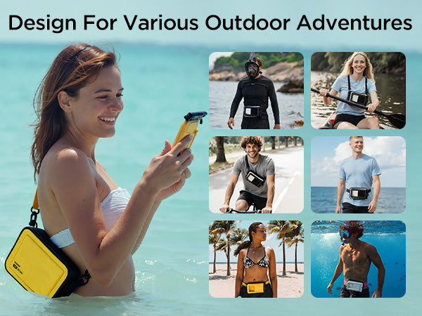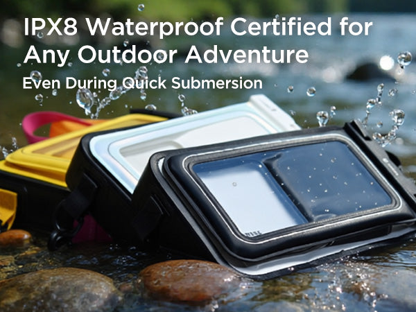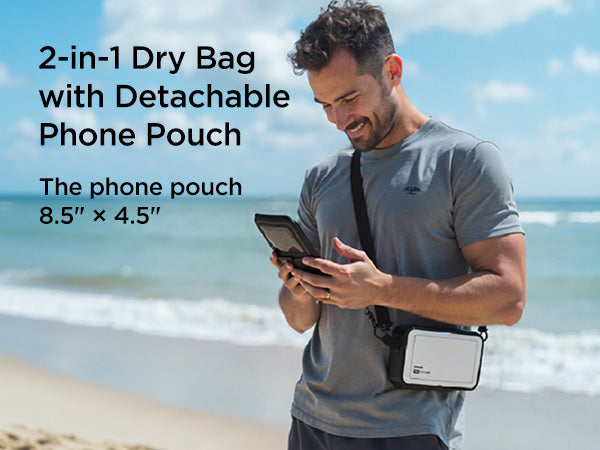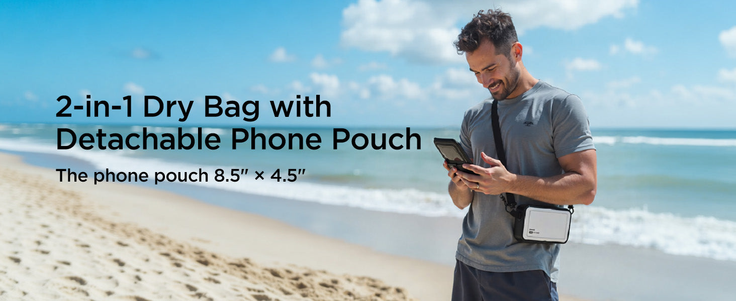 Premium Protection – Made of PVC-coated polyester with IPX8 waterproof rating and sealed closure to keep valuables safe from water, sand, and dust.